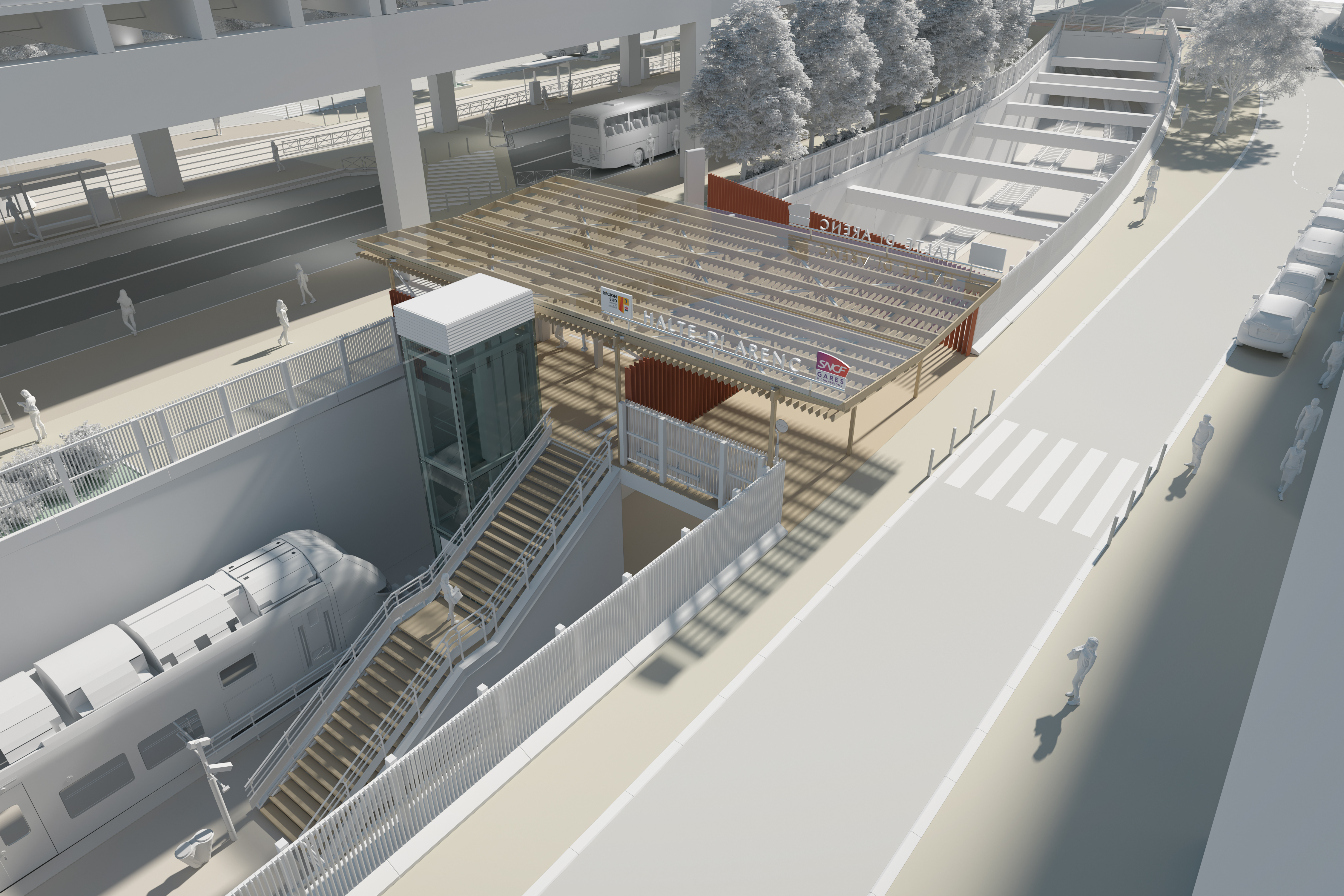 - Mise en place d’accès facilités pour tous les voyageurs, avec escaliers, rampe PMR, ascenseurs et équipements adaptés aux personnes à mobilité réduite ;