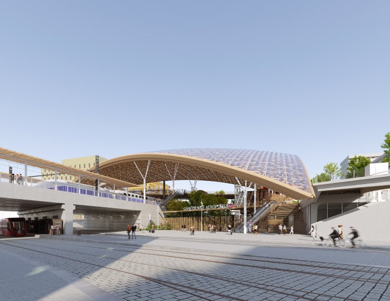 - L’utilisation optimisée des surfaces bien solarisées de la canopée bioclimatique de la gare pour produire de l’énergie solaire, soit environ 600 MWh / an ;