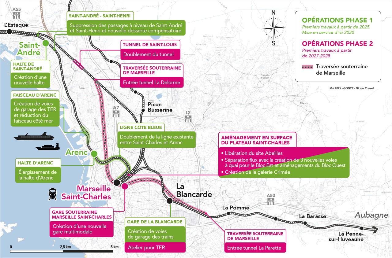 A Marseille, les travaux vont concerner différents secteurs et s’étaleront entre 2025 et 2035 pour les phases 1 & 2 du projet.