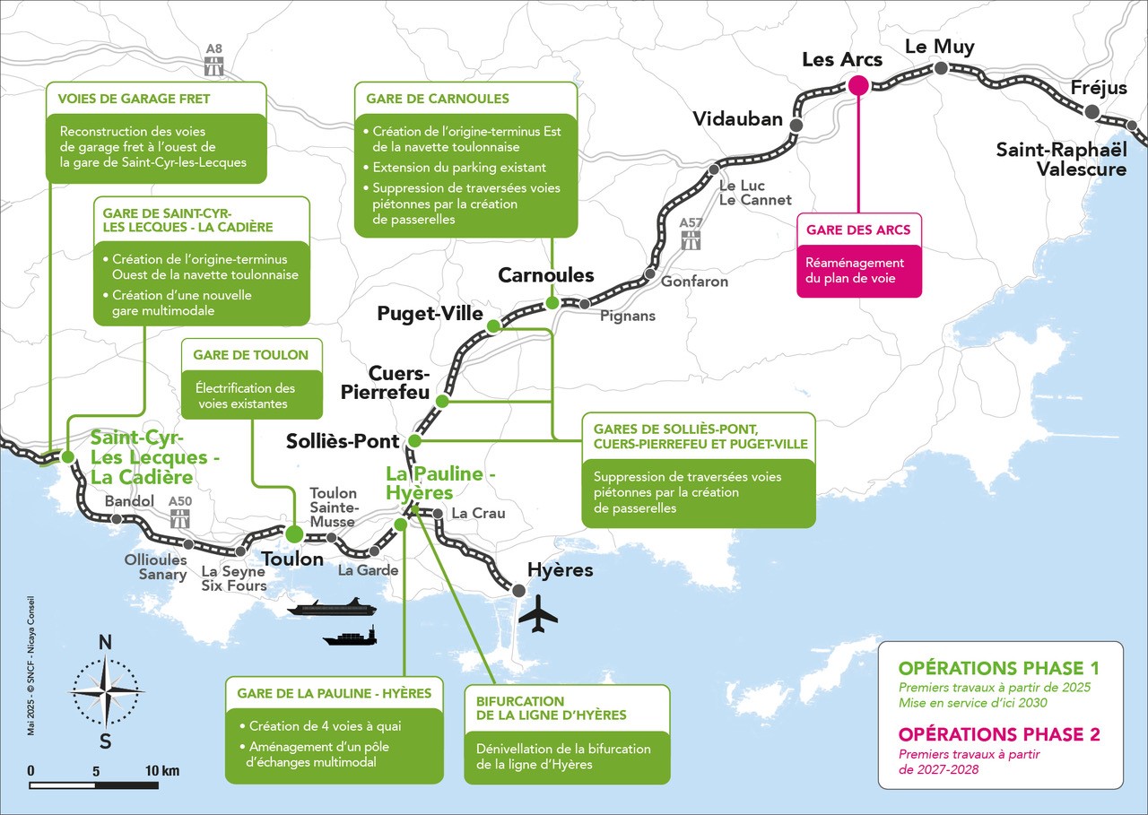 Les premiers travaux préparatoires dans le Var débuteront au 2ème semestre 2025 par des libérations d’emprise foncière, des dévoiements de réseaux, etc.